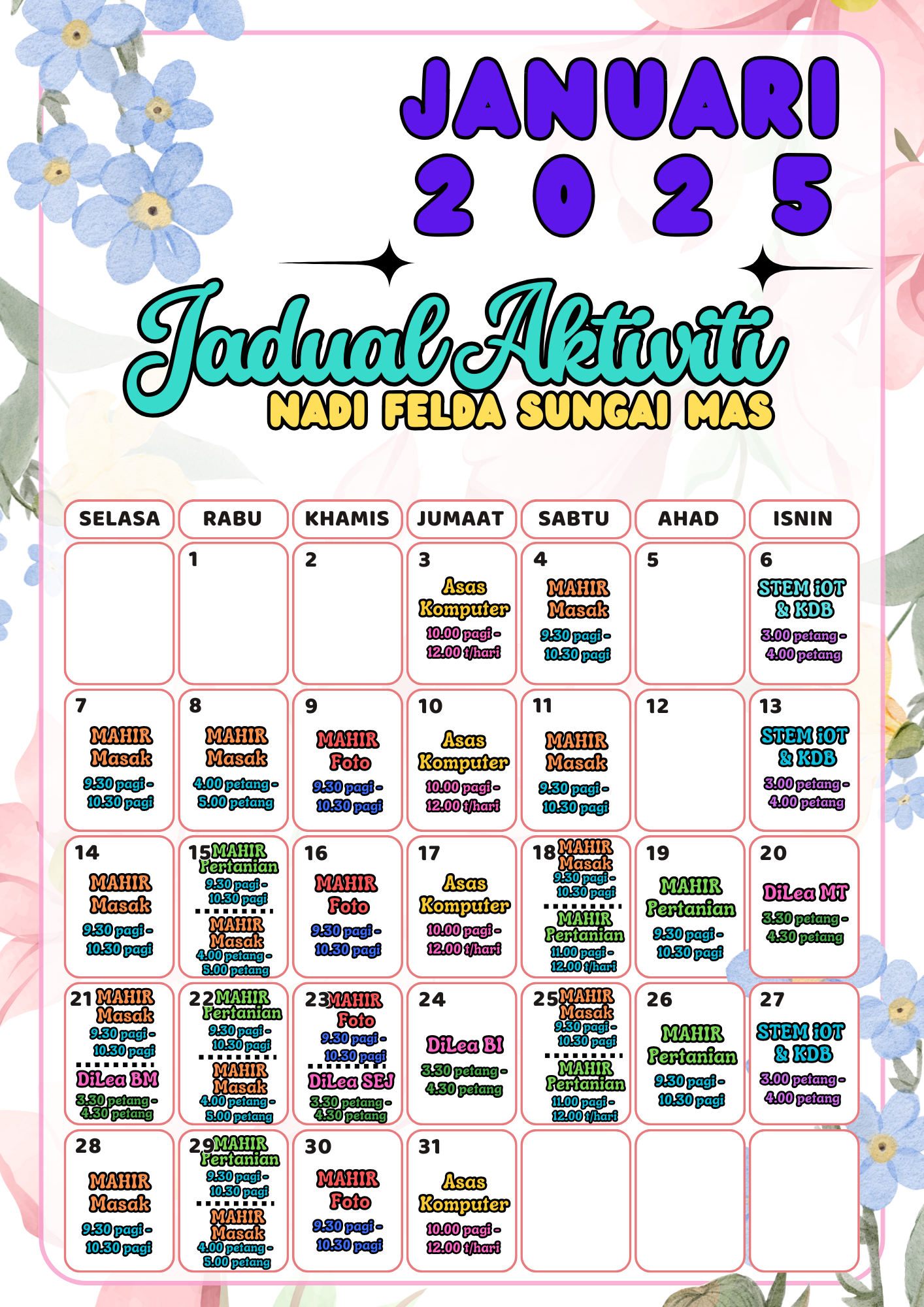 JADUAL AKTIVITI JANUARI 2025