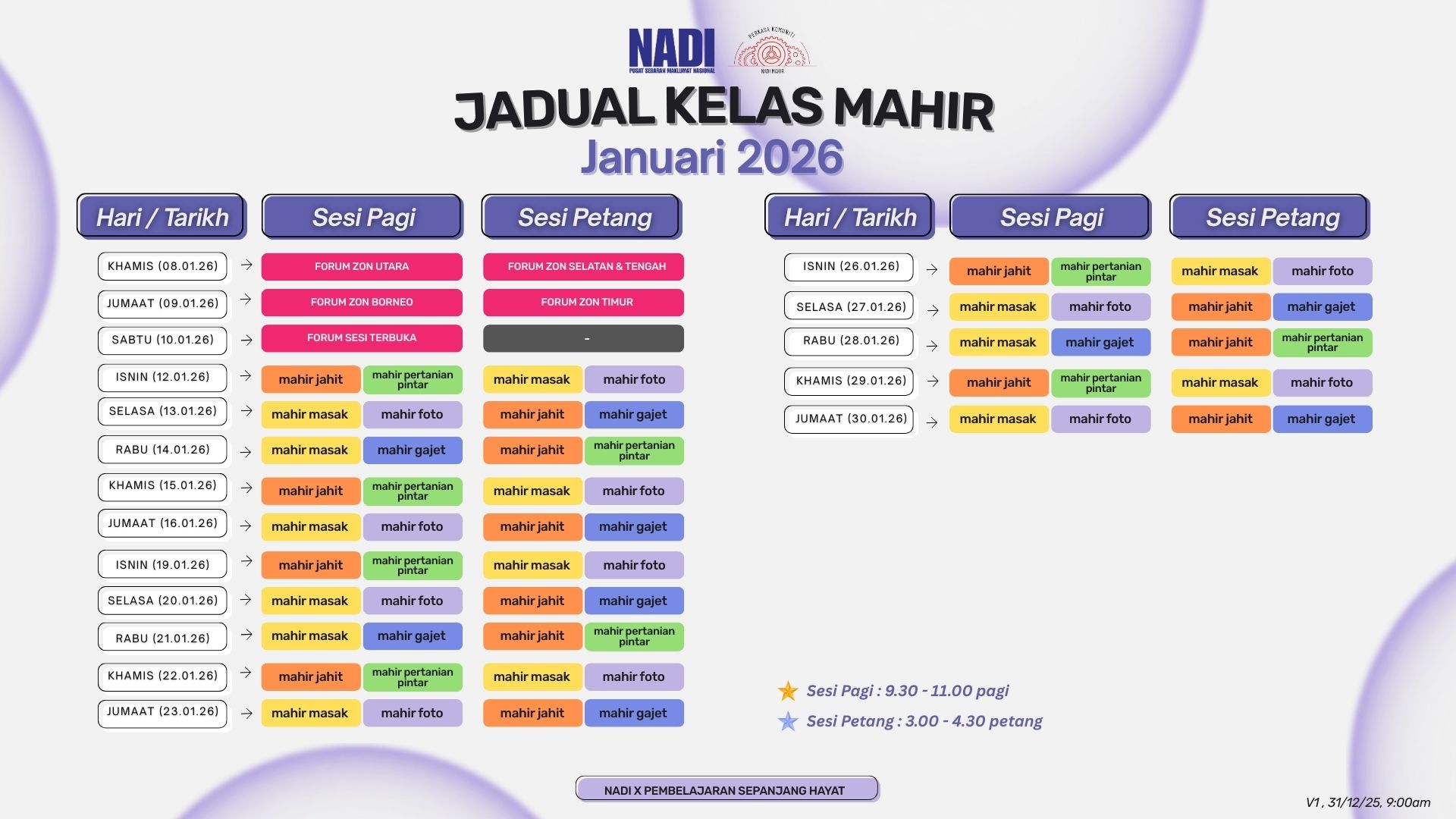 JADUAL AKTIVITI JANUARI 2026 – KELAS MAHIR & DILEA TUISYEN RAKYAT